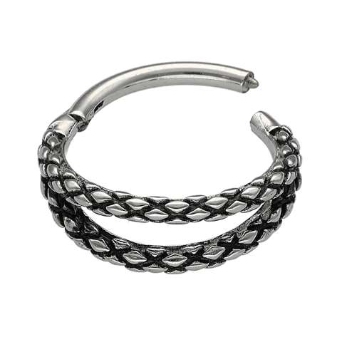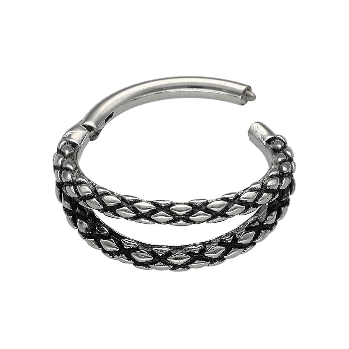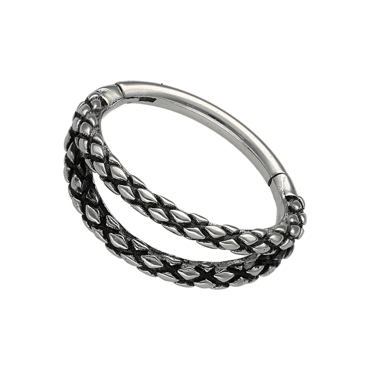 Click ring in chirurgisch staal met dubbele gedraaid motief