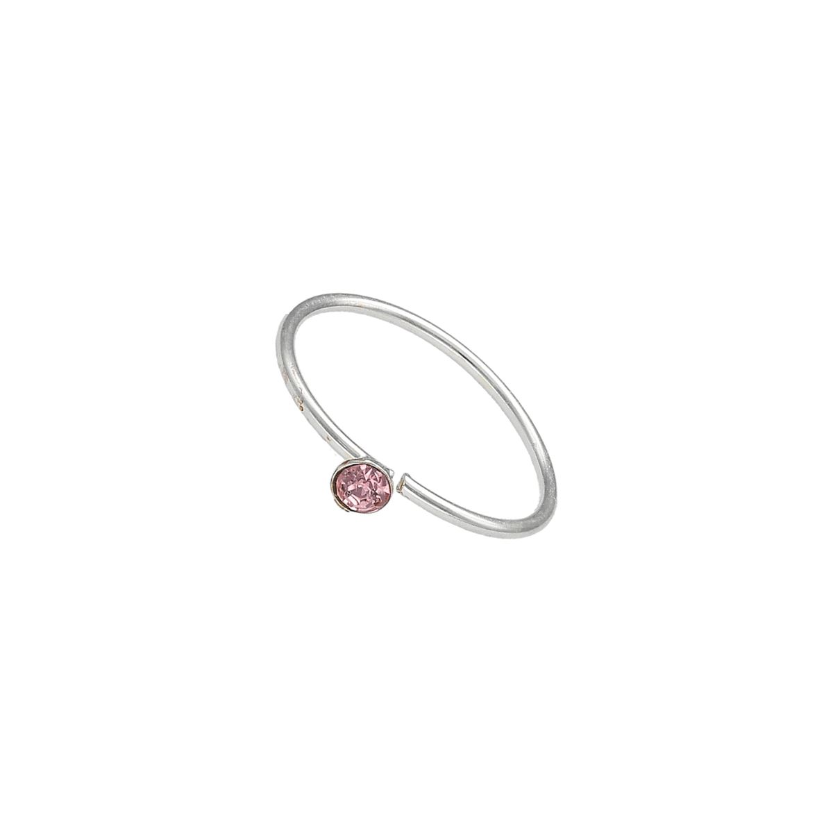 Deze doorlopende ring is vervaardigd uit hoogwaardig zilver, Sterling 925% en voorzien van een klein roos kristalletje. De ring is eenvoudig te buigen en in het vertakkingskanaal in te brengen ( zowel neus, oor en lip). Het gebruikte materiaal wordt gekenmerkt door zijn speciale eigenschappen zoals kleurechtheid en materiaalweerstand. De ring is verkrijgbaar in een dikte van 0,8 mm met een diameter van 8 mm. De diameter van de kristal bedraagt 1.5 mm.