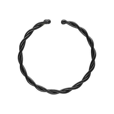 Doorlopende ring in zwart chirurgisch staal, gevlochten