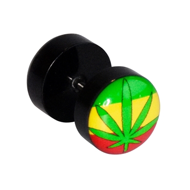 Fake plug in acrylic, cannabis rasta, diameter 8-10mm