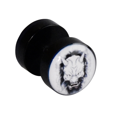 Fake plug in acrylic, doodskop zwart/wit, diameter 10mm