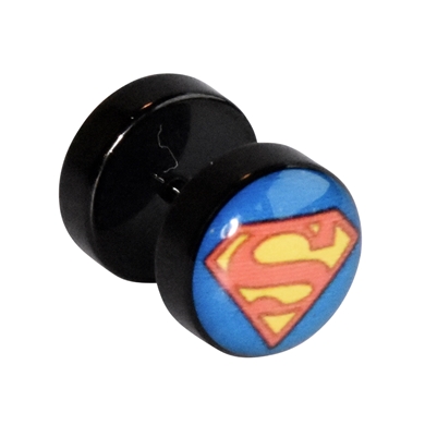 Fake plug in zwart chirurgisch staal, superman, diameter 10mm