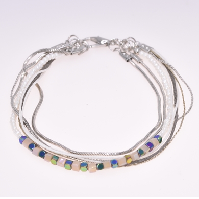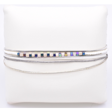 Set van 4 armbanden verbonden met 1 enkel slot. Deze speelse armband geeft een frisse twist aan al jouw looks en kan zowel doorheen de winter als tijdens de zomer gedragen worden. Verstelbaar in grootte.