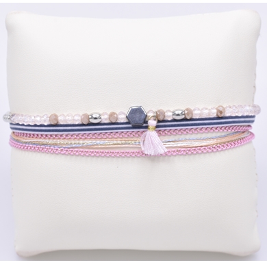 Set van 4 armbanden verbonden met 1 enkel slot. Deze speelse armband geeft een frisse twist aan al jouw looks en kan zowel doorheen de winter als tijdens de zomer gedragen worden. Verstelbaar in grootte.