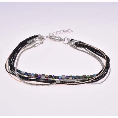 Set van 8 armbanden verbonden met 1 enkel slot. Deze speelse armband geeft een frisse twist aan al jouw looks en kan zowel doorheen de winter als tijdens de zomer gedragen worden. Verstelbaar in grootte.
