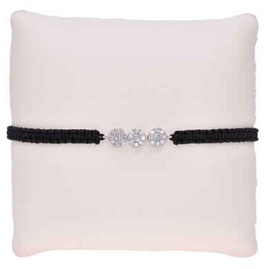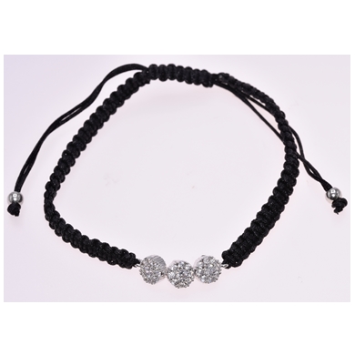Gevlochten zwarte armband, 3 bolletjes met verschillende kristallen