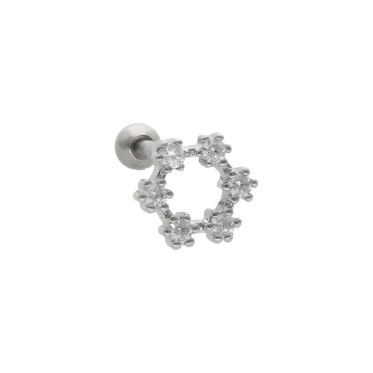 Helix/tragus piercing in chirurgisch staal, cirkel met 6 witte kristallen