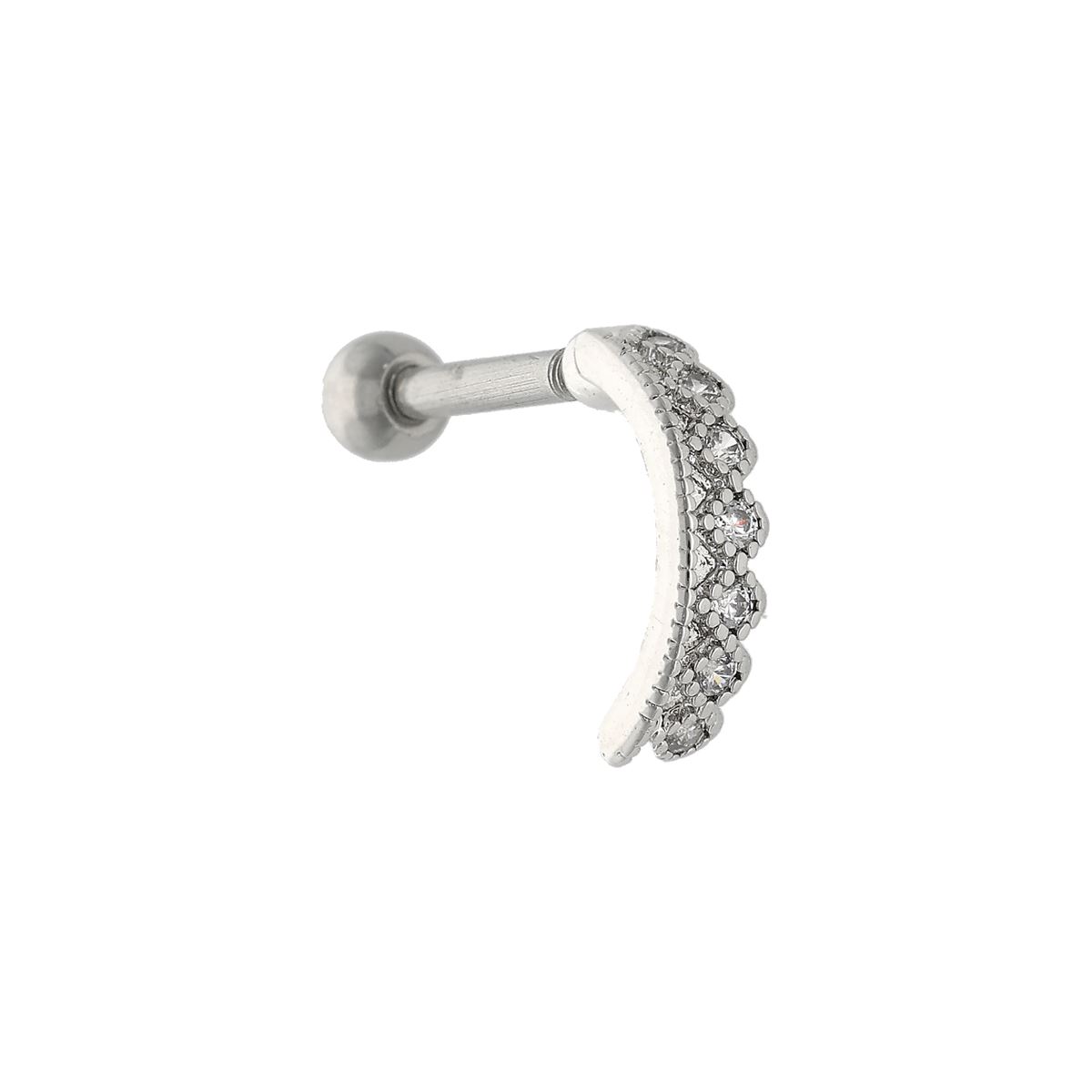 Helix/tragus piercing in chirurgisch staal, gebogen staafje met verschillende witte kristallen