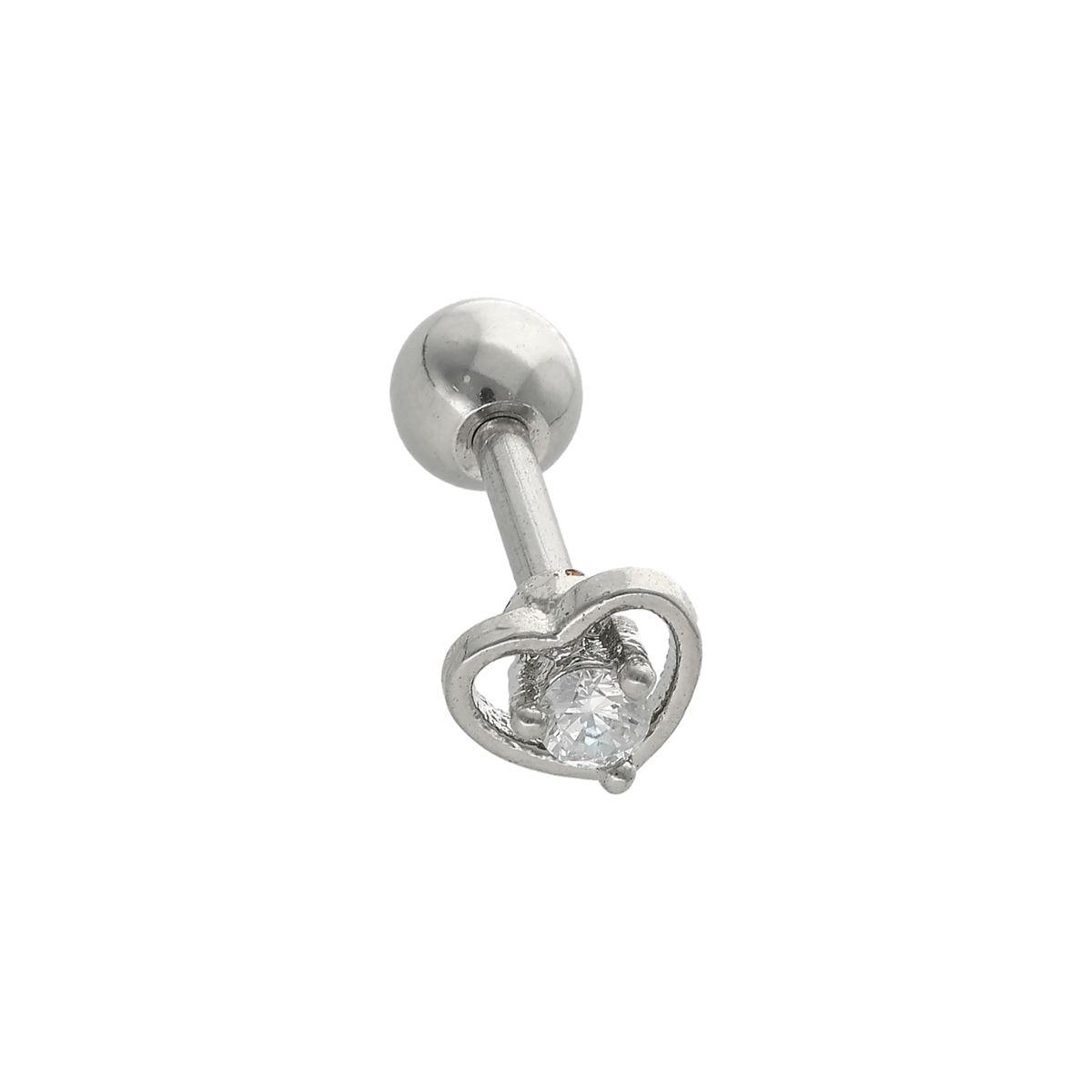 Helix/tragus piercing in chirurgisch staal, hartje met een klein kristalletje