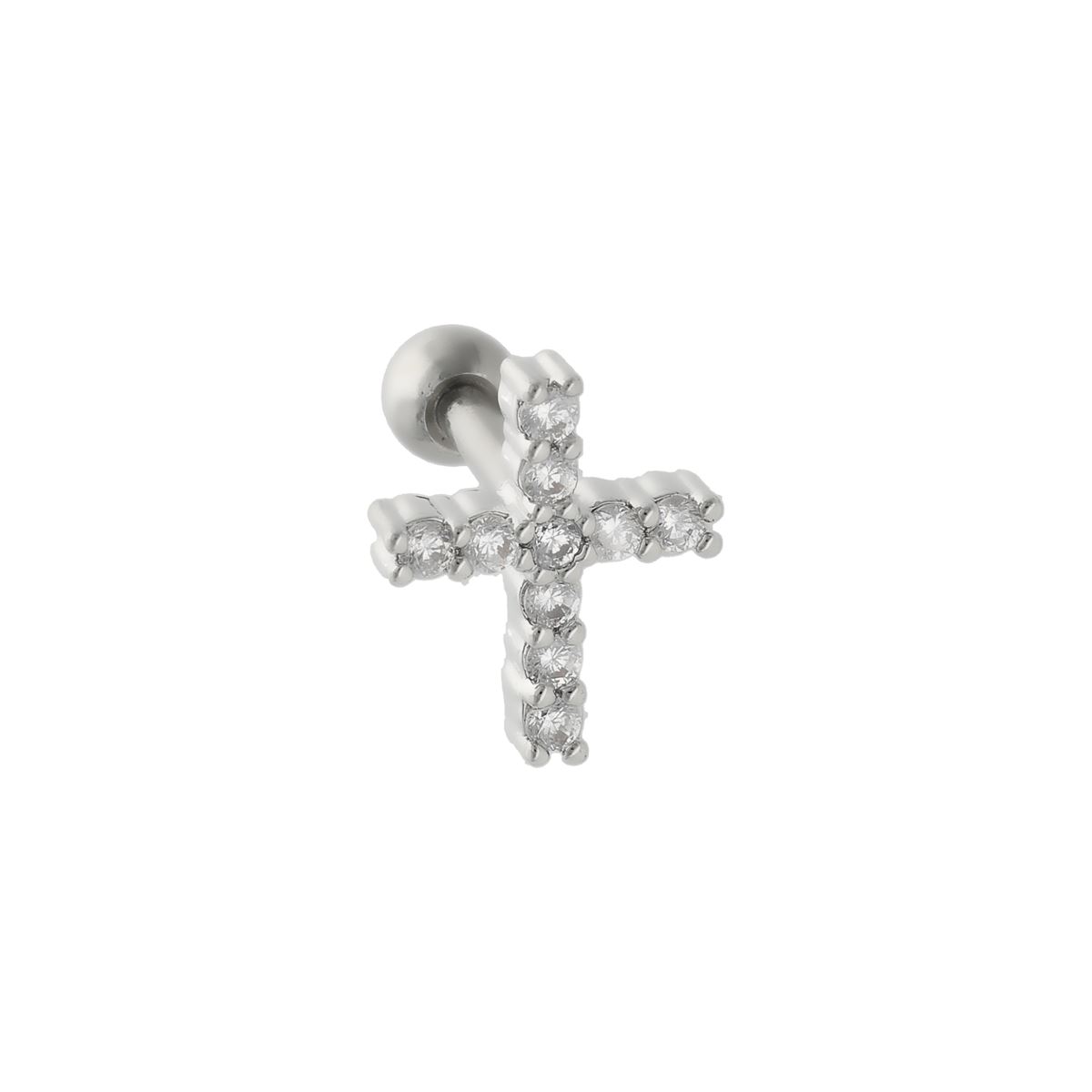 Helix/tragus piercing in chirurgisch staal, kruis met verschillende witte kristallen