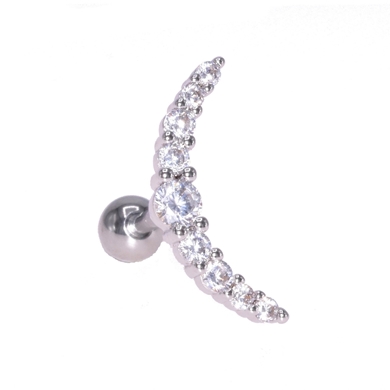 Helix/tragus piercing in chirurgisch staal, motief met 9 "prong" witte kristallen