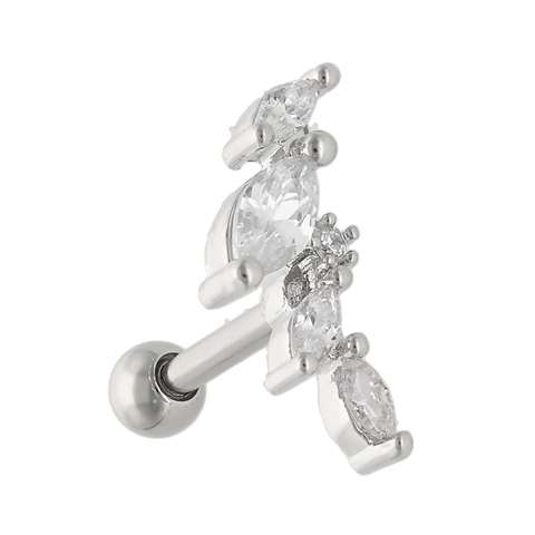 Helix/tragus piercing in chirurgisch staal, motief met verschillende witte kristallen