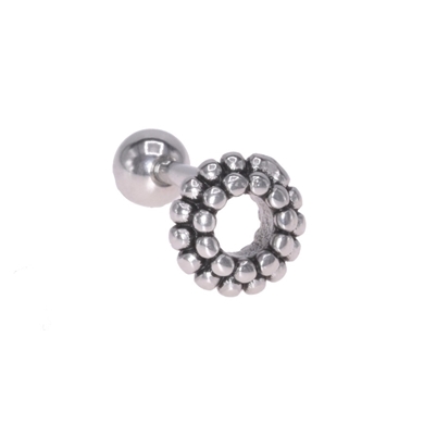 Helix/tragus piercing in chirurgisch staal, rond motief met verschillende kleine balletjes