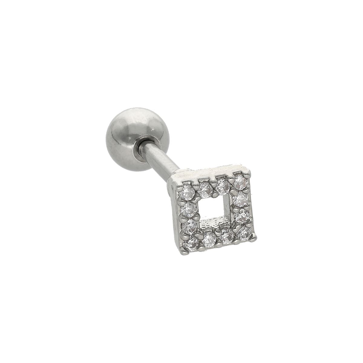 Helix/tragus piercing in chirurgisch staal, vierkant met witte kristallen