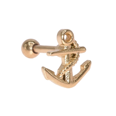 Helix/tragus piercing in goud chirurgisch staal met een anker