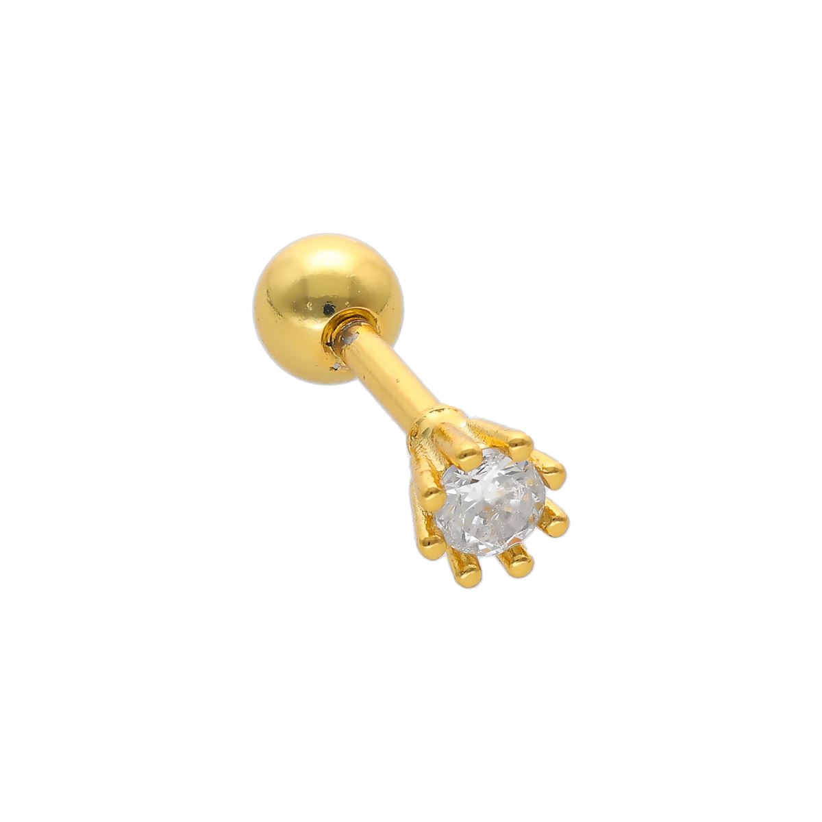 Helix/tragus piercing in goud chirurgisch staal met een witte "prong"setting kristal