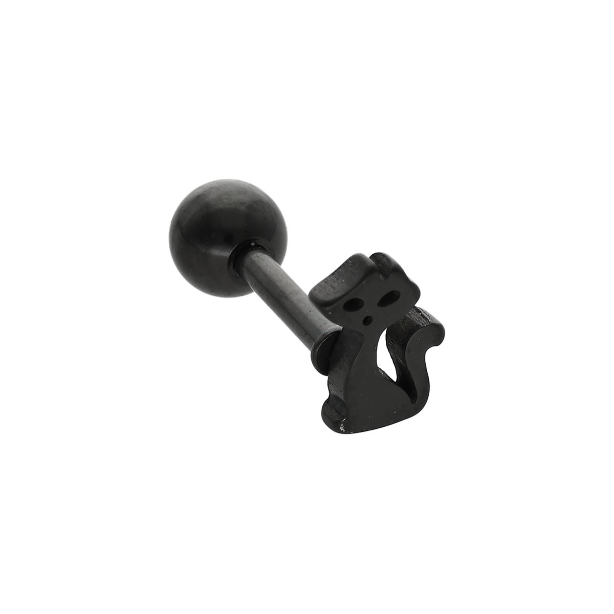 Helix/tragus piercing in zwart chirurgisch staal met een kat