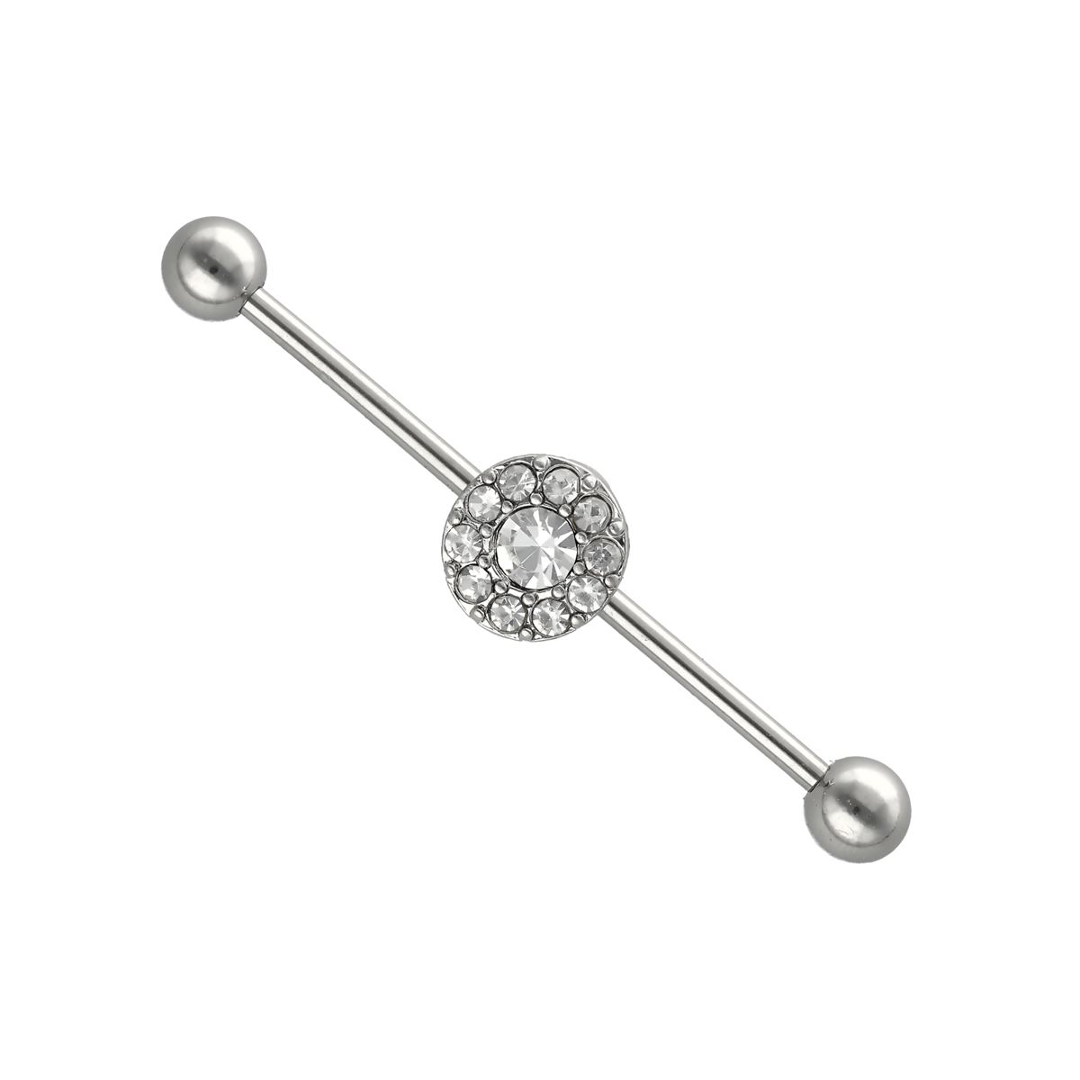 Industrial piercing in chirurgisch staal, motief met verschillende witte kristallen