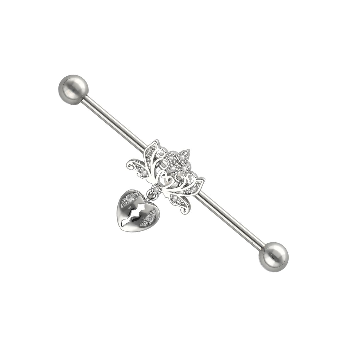Industrial piercing in chirurgisch staal, motief met verschillende witte kristallen en een hangertje