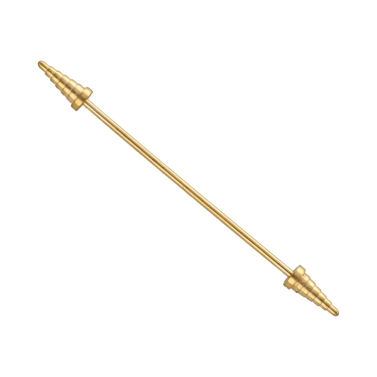 Deze piercing is gemaakt van hoogwaardig chirurgisch staal 316L bedekt met een goudkleurige PVD coating en is geschikt als oorbellen (industrial). Om het gebruik van beide 8 mm spikes te vergemakkelijken, schroef je ze los. Deze piercing heeft een staafdikte van 1,2 mm en een staaflengte van 40 mm.