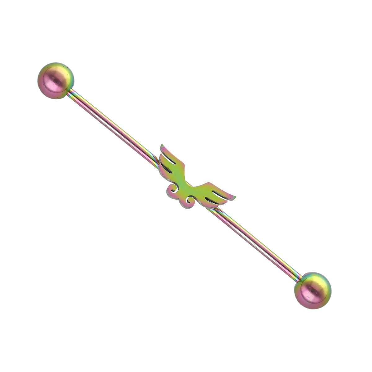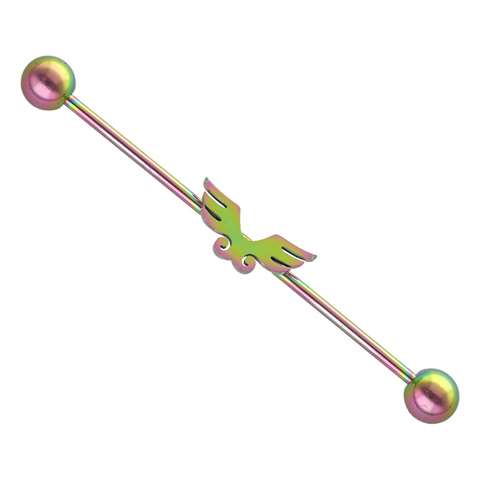 Industrial piercing in "rainbow" chirurgisch staal met vleugeltjes