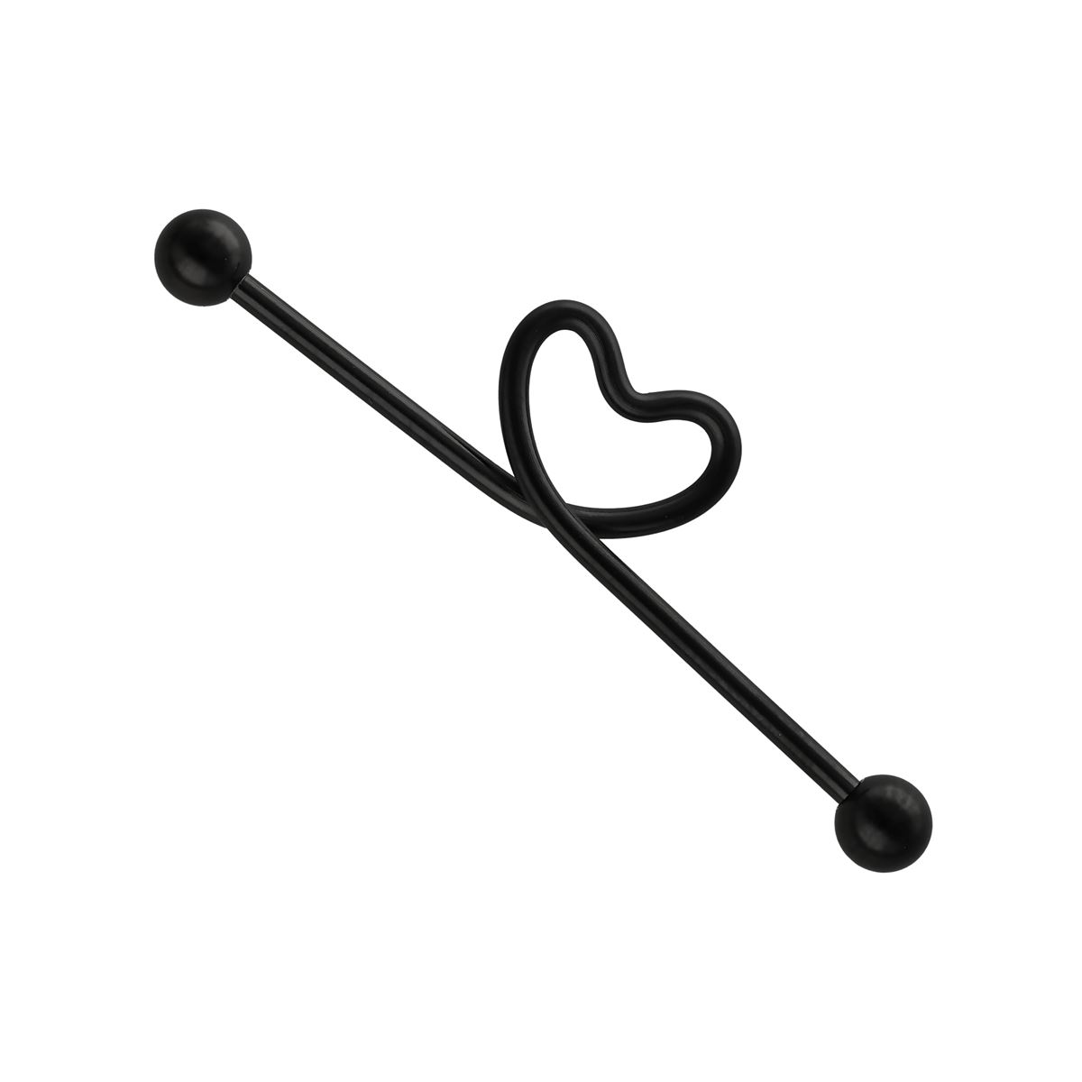 Industrial piercing in zwart chirurgisch staal met een open hart
