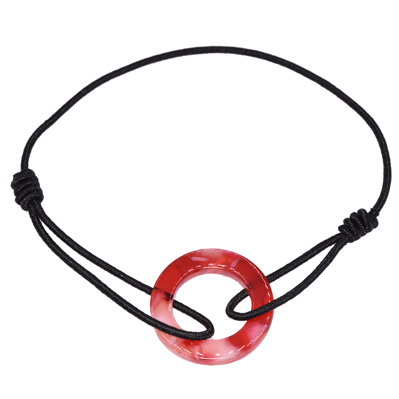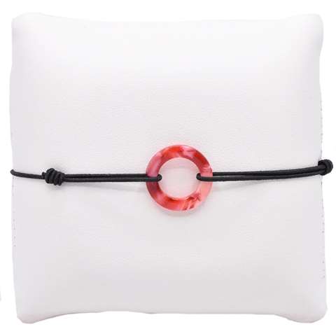 Zwarte elastische koordarmband met een open cirkelmotief in het midden! Dit armbandje is verstelbaar met een pull-tie sluiting en past om iedere pols. Pull-tie sluiting betekent simpel gezegd dat je het makkelijk zelf om en af kunt doen door aan de koordjes te trekken! De diameter van de cirkel bedraagt 17 mm.