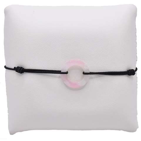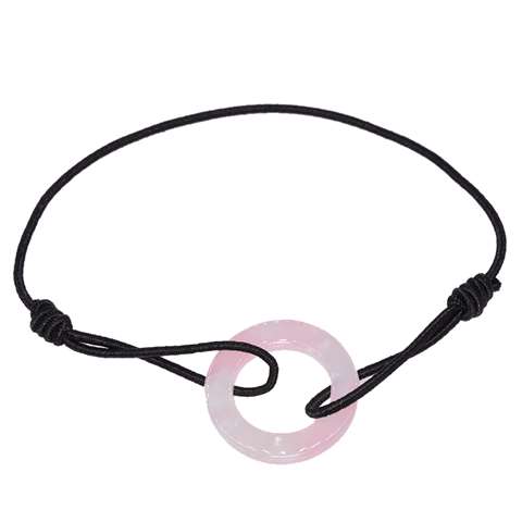 Zwarte elastische koordarmband met een open witte cirkel