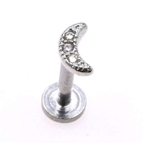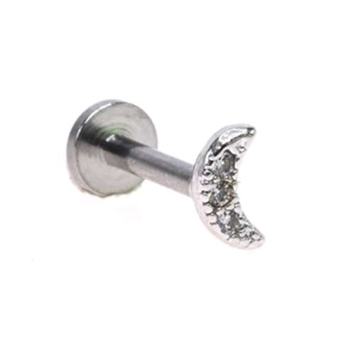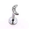 Labret/helix/tragus piercing in chirurgisch staal, halve maan met 3 kristallen