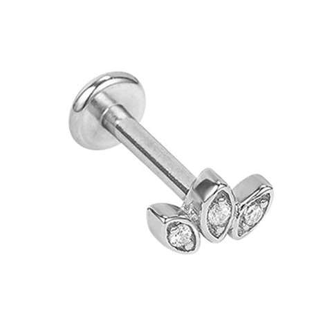 Labret/helix/tragus piercing in chirurgisch staal met 3 witte kristallen