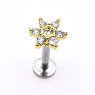 Labret/helix/tragus piercing in chirurgisch staal motief goudkleurig met 7 kristallen