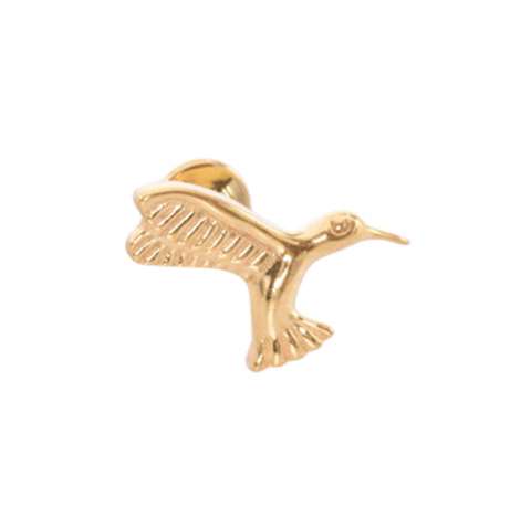 Labret/helix/tragus piercing in goud chirurgisch staal met een kolibrie