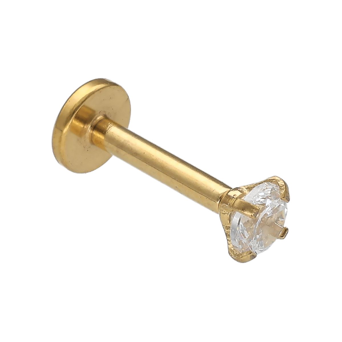 Labret/Helix/tragus piercing in goud chirurgisch staal met "prong" setting witte kristal