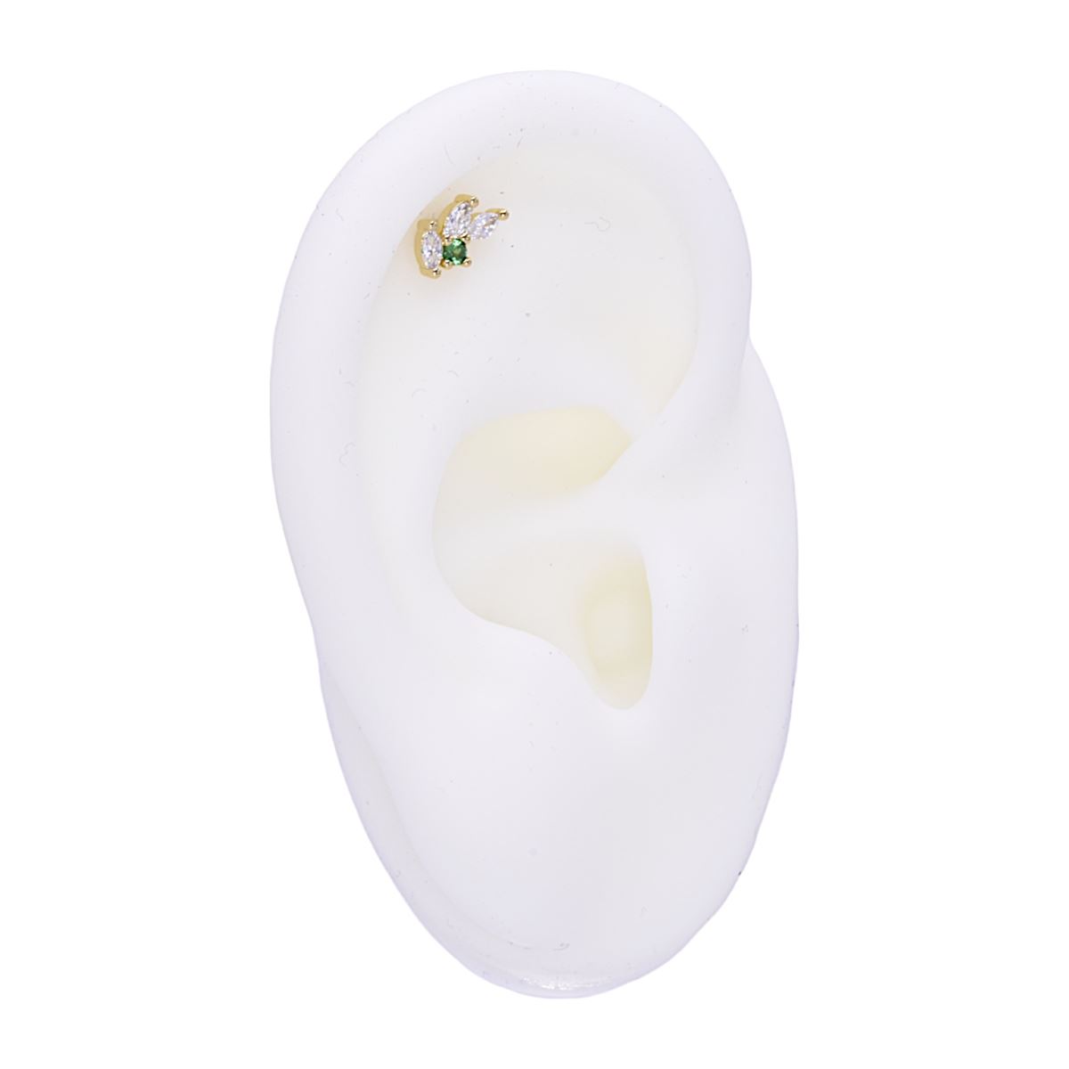 Labret/helix/tragus piercing in goud chirurgisch staal motief met een groene kristal