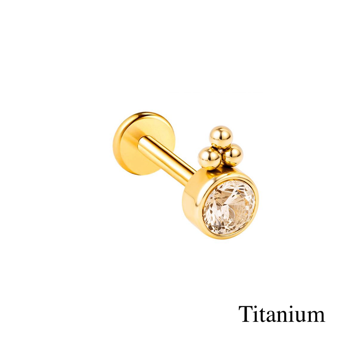 Labret/helix/tragus piercing in goud TITANIUM kristal met kleine bollen