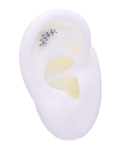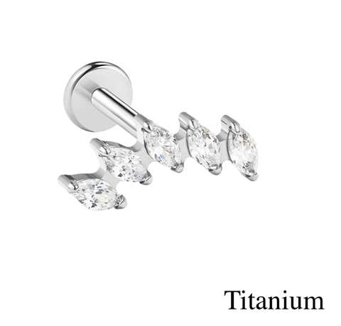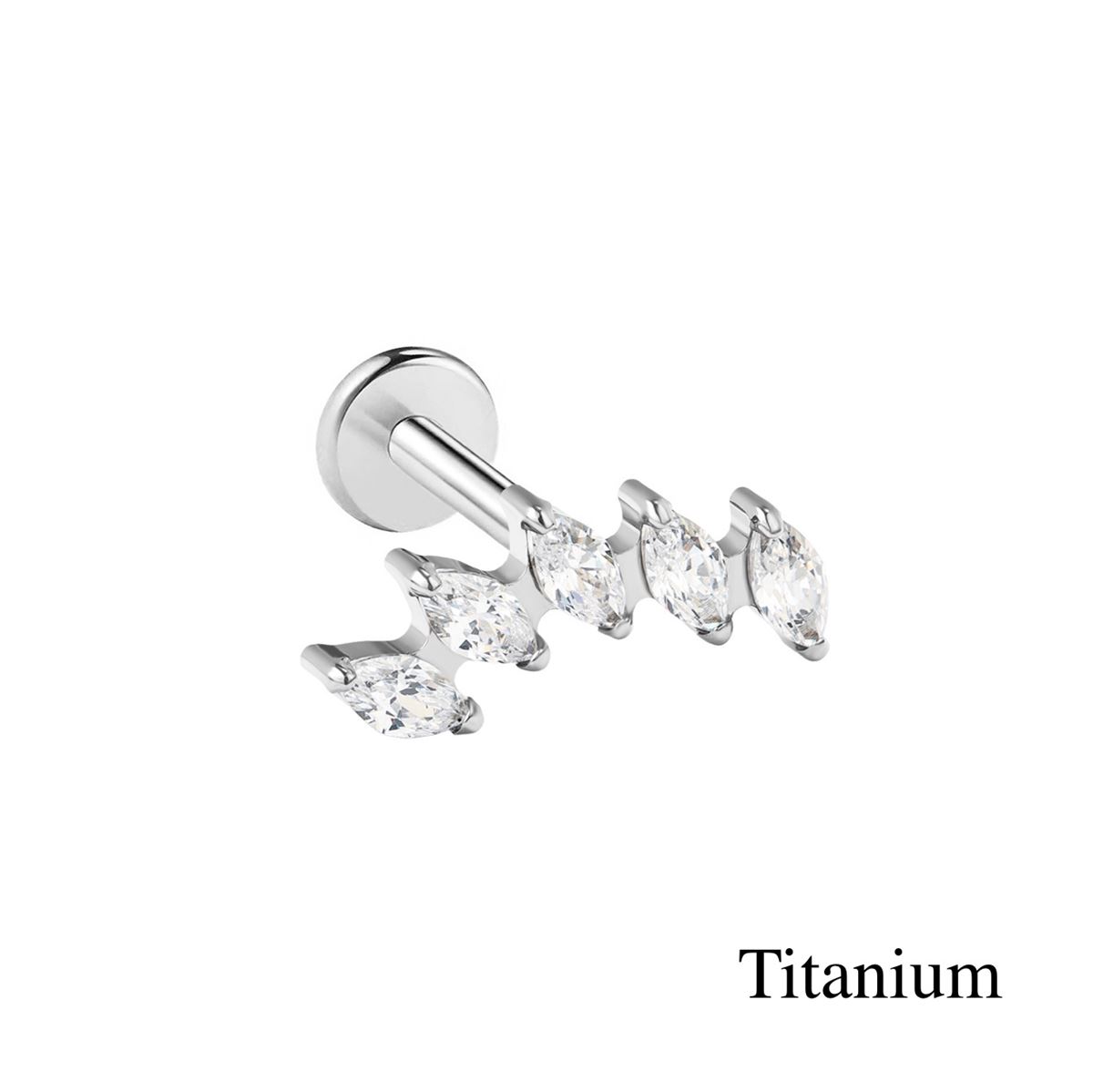 Labret/helix/tragus piercing in TITANIUM motief met 5 witte kristallen