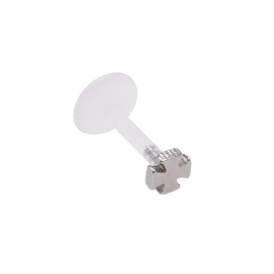 Deze labret is gemaakt van hoogwaardige bioflex. Het gebruikte staafmateriaal wordt gekenmerkt door zijn speciale eigenschappen zoals huidverdraagzaamheid, flexibiliteit (aanpasbaarheid) en materiaalweerstand. De labret werkt volgens het plug-in-systeem. Het heeft een staafdikte van 1,2 mm en is verkrijgbaar met een staaflengte van 8 mm. Diameter van de kruis bedraagt 3mm.