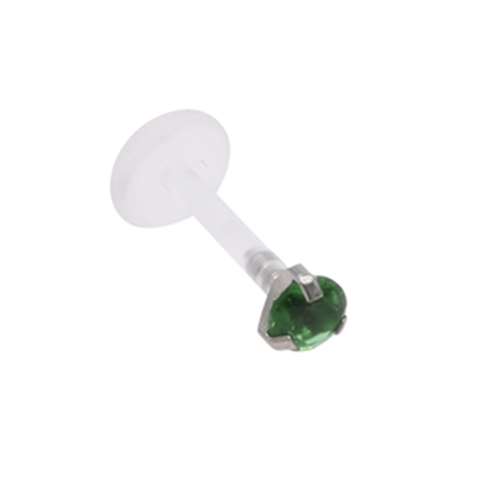 Labret in bioflex, "prong" setting, rond met groene kristal