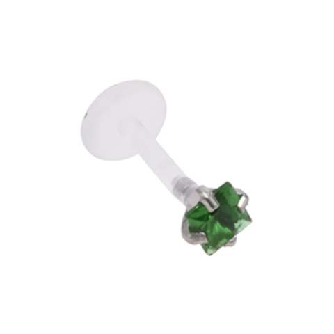 Labret in bioflex, "prong" setting, vierkante, groene kristal
