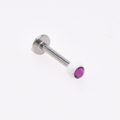Labret in chirurgisch staal met supernova wit balletje en fuchsia kristal