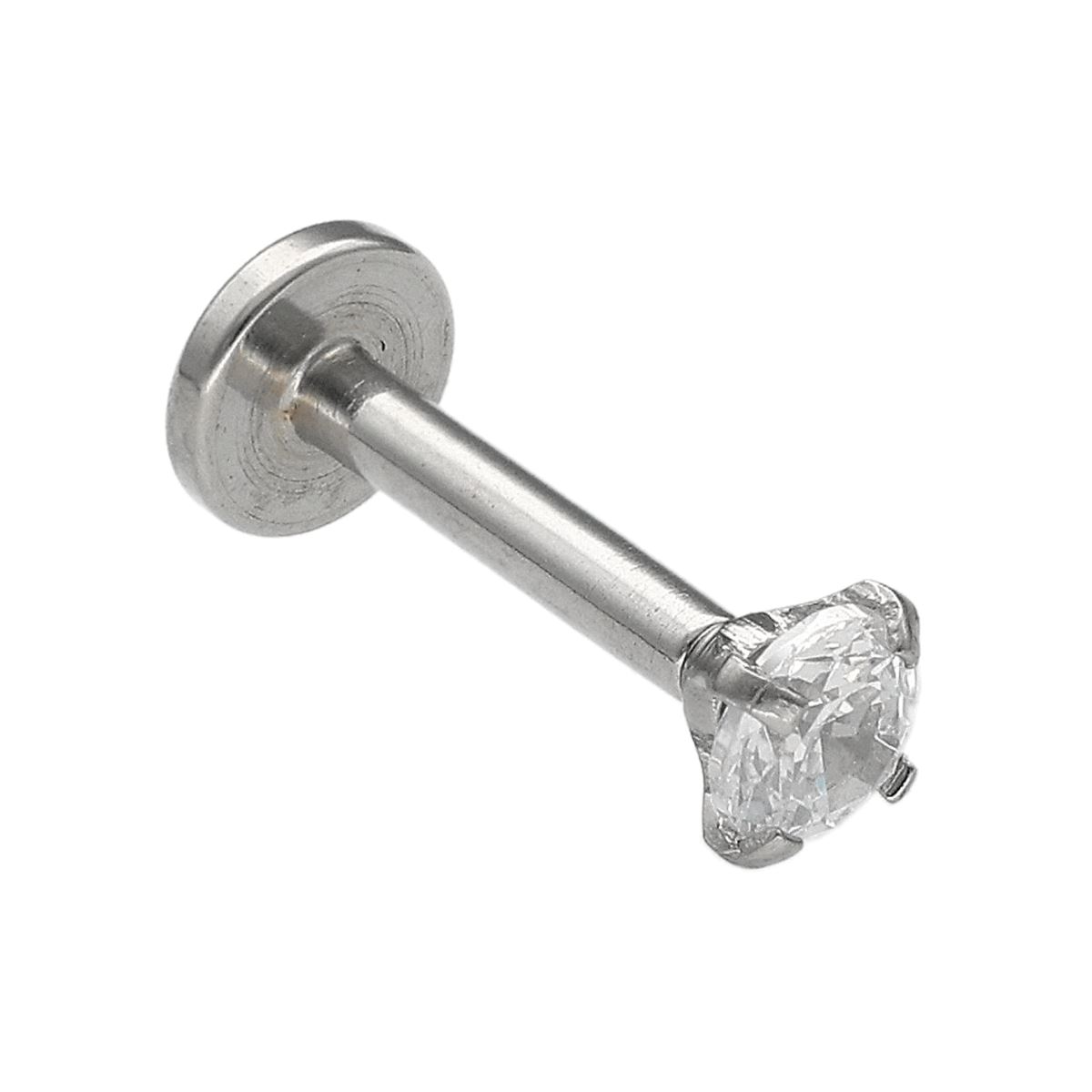 Labret in chirurgisch staal, "prong" setting, witte ronde kristal