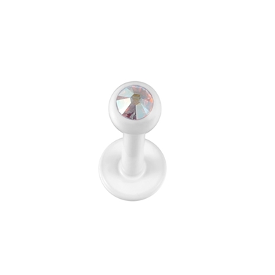 Labret in wit chirurgisch staal, supernova met A.B. (gebroken wit) kristal