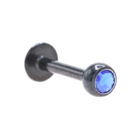 Labret in zwart chirurgisch staal, grote, platte donker blauwe kristal