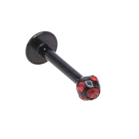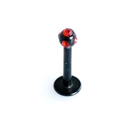 Labret in zwart chirurgisch staal, multi-kristallen, rood