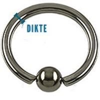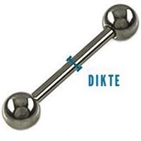 De meest voorkomende diktes zijn 1.2mm (labret, segmentringen, hoefijzer, wenkbrauw, oorbellen, fake piercings, …) en 1.6mm (tongpiercing, navelpiercing, …).