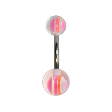 Deze navelpiercing is gemaakt van hoogwaardig chirurgisch staal 316L en voorzien van afneembare ballen van hoogwaardig acrylic. Het gebruikte staafmateriaal wordt gekenmerkt door zijn speciale eigenschappen zoals kleurechtheid en materiaalweerstand. Dit artikel is verkrijgbaar met een staafdikte van 1,6 mm en een staaflengte van 10 mm. De 1,6 mm schroefdraad van deze navelpiercing kan op verschillende manieren worden gecombineerd met onze schroefaccessoires. Gekleurd balletje met een transparante bal errond. Diameter van de balletjes bedragen 5mm en 8mm.