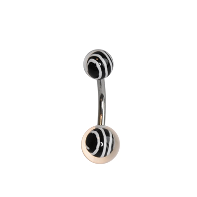 Navelpiercing in acrylic, dubbele bal spiraal zwart/wit