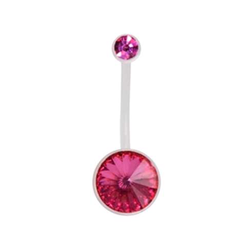 Navelpiercing in bioflex, zwangerschapspiercing met fuchsia kristallen