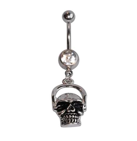Navelpiercing in chirurgisch staal, doodskop