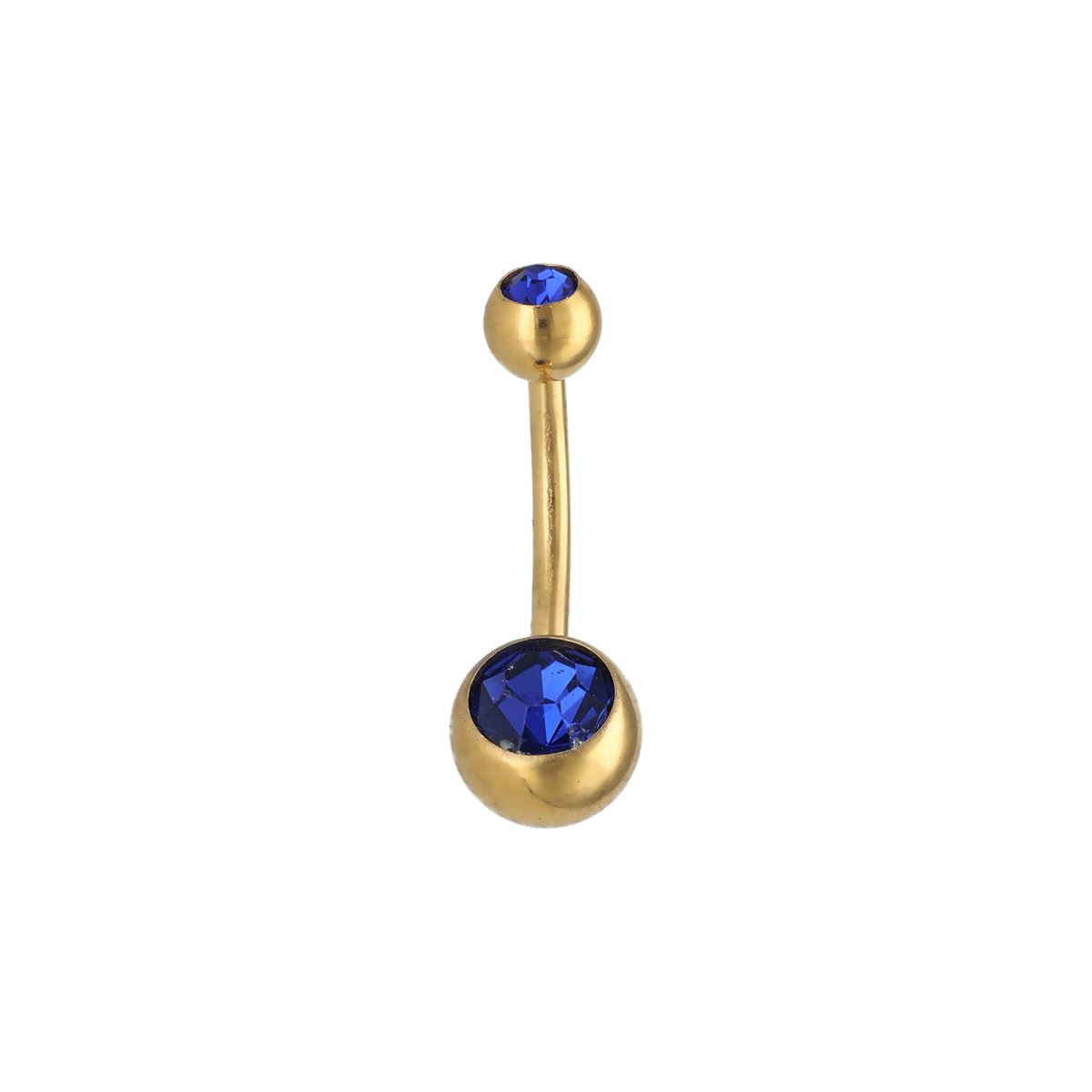 Navelpiercing in chirurgisch staal, goud met donker blauwe kristallen